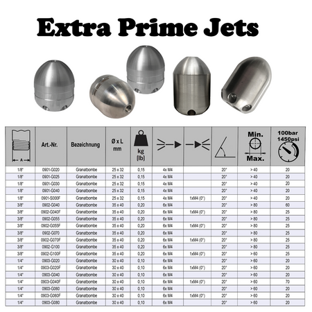 Grenade bomb 3/8" with pre-jet and steel inserts, ExPJ cleaning nozzle