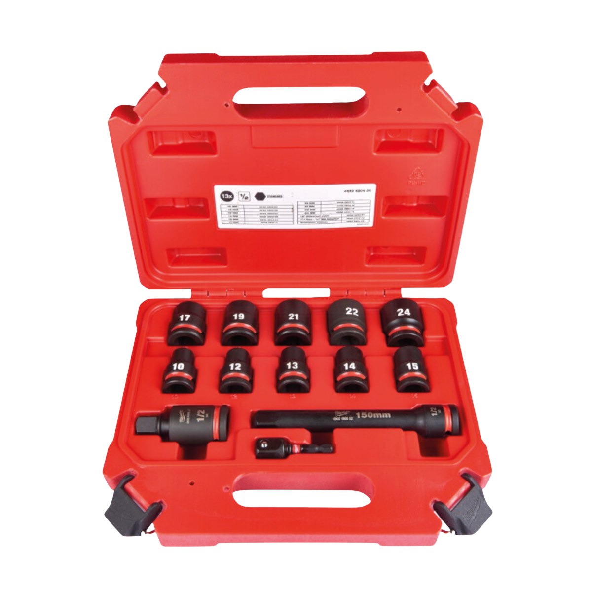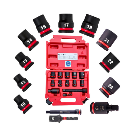 10 impact sockets: 10, 12, 13, 14, 15, 17, 19, 21, 22, 24 mm