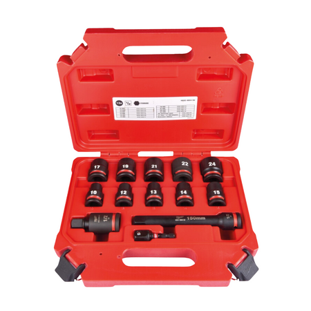 - 13-piece set - including 10 impact sockets, adapter and universal joint