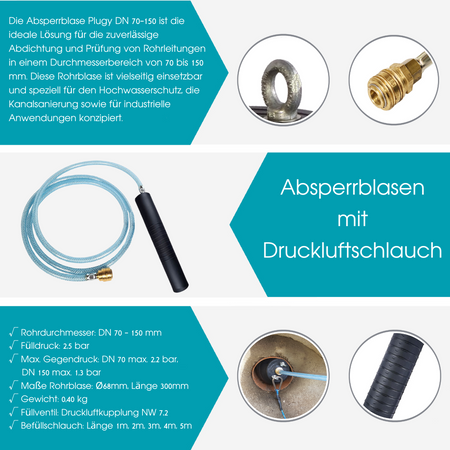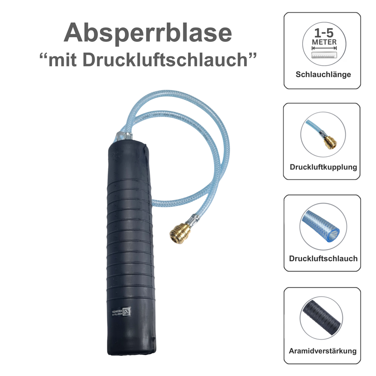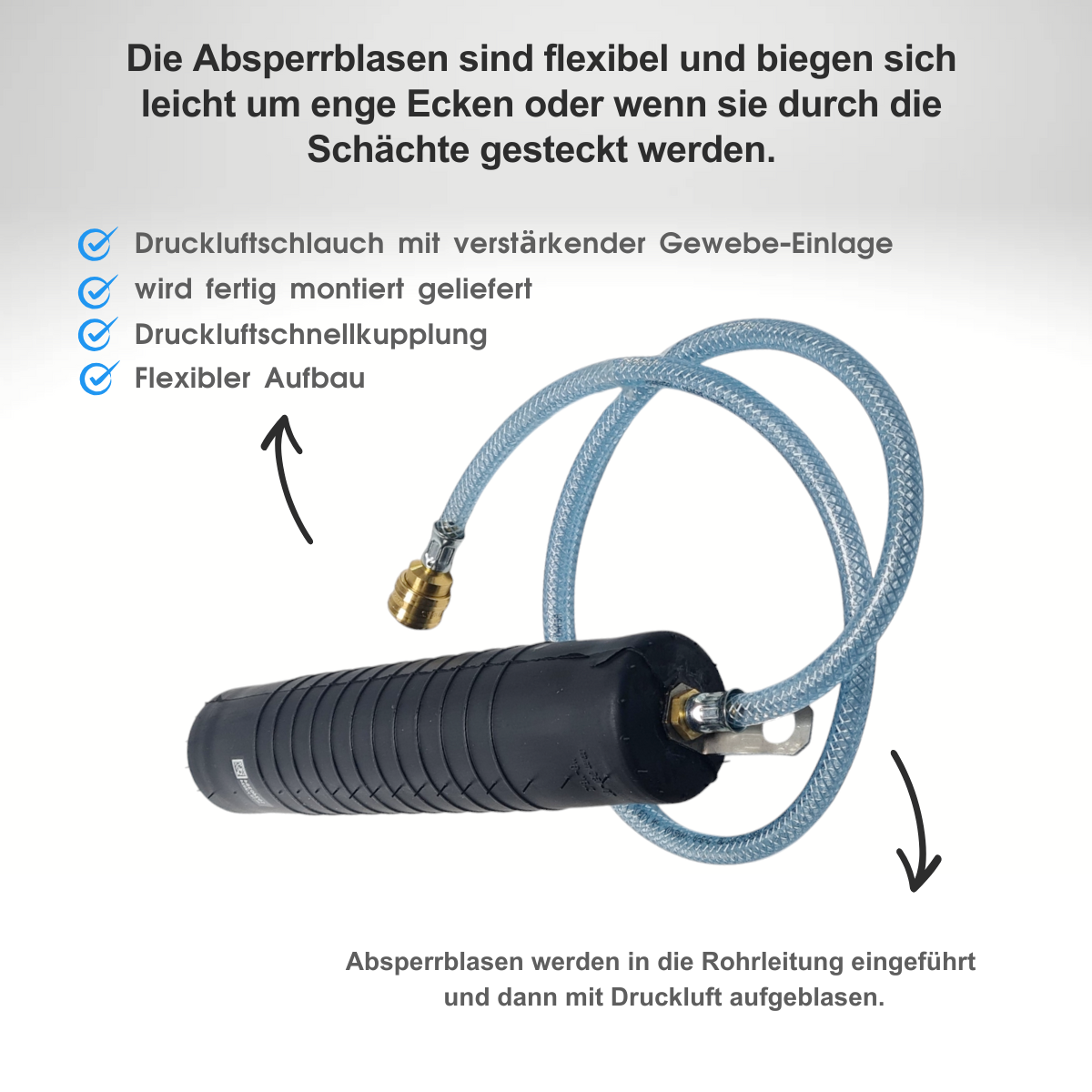 Rohr-Absperrblase Plugy DN 70-150 (2,5 bar) mit 2 m / 4 m Druckluftschlauch