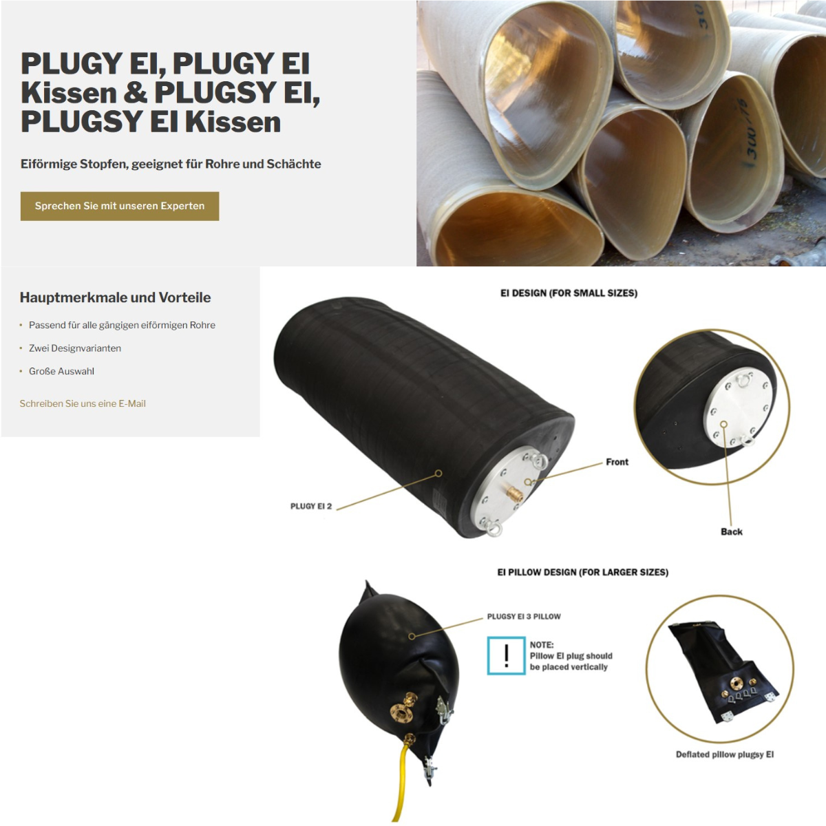 Solution to temporarily block pipes with wastewater flow safely.