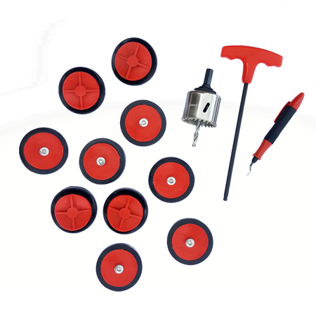The delivery includes a set with ten pipe patches and extensive accessories.