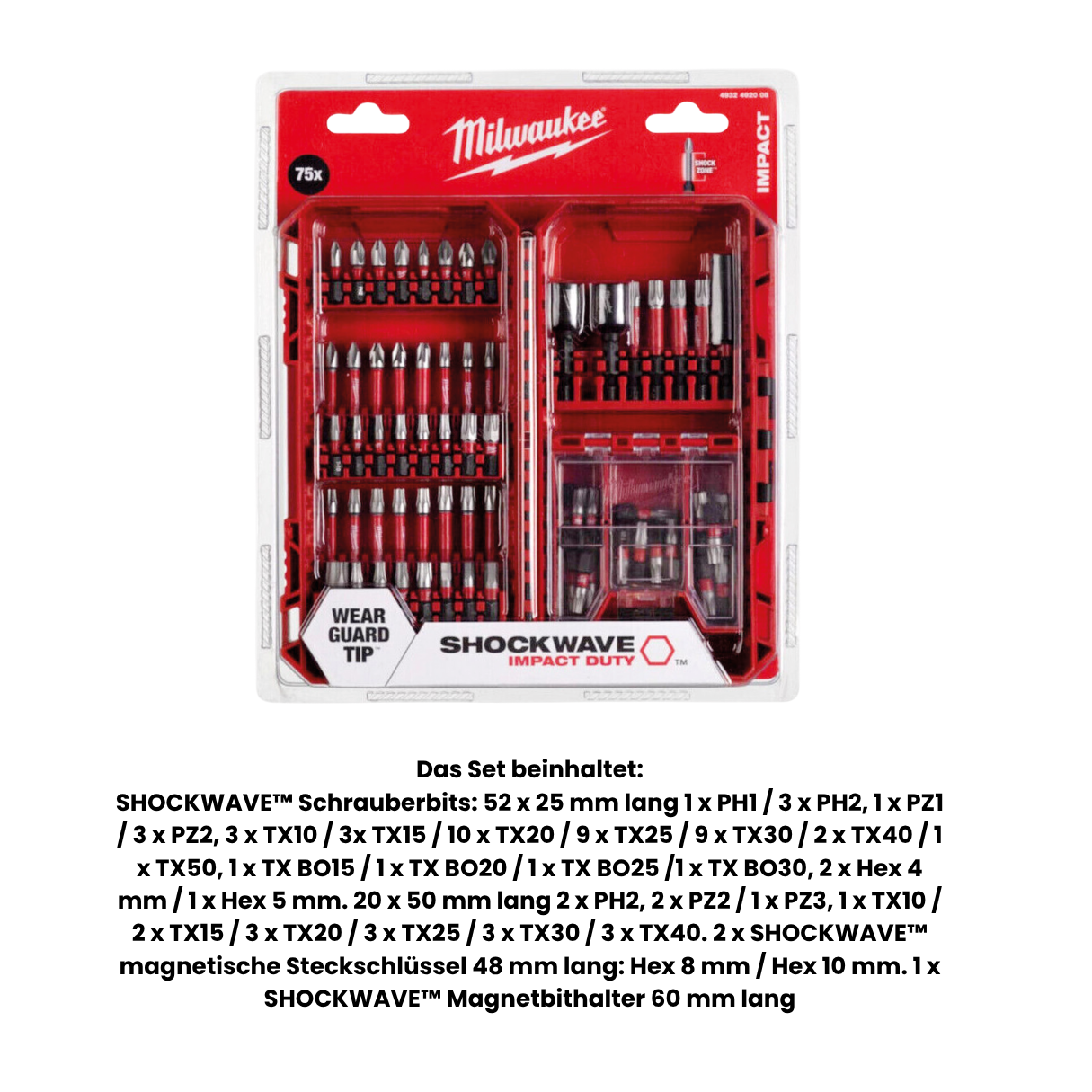 1x Milwaukee SHOCKWAVE Drilling & Screwing Set 75 pieces