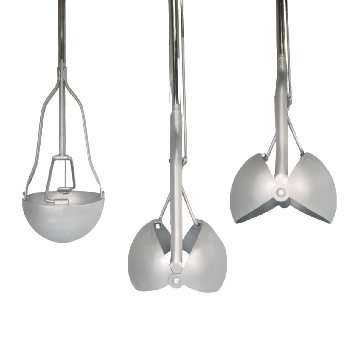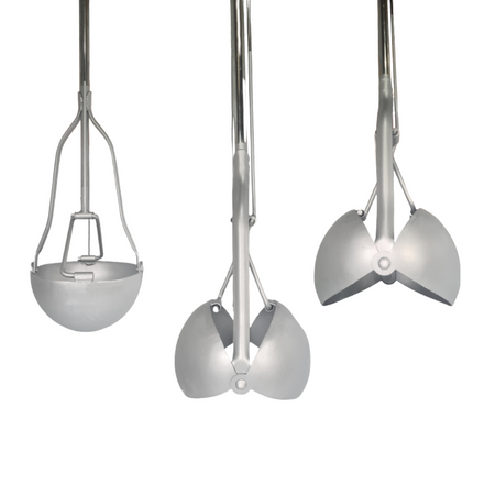 T-Hebel werden die Schaufelhälften geöffnet und geschlossen.