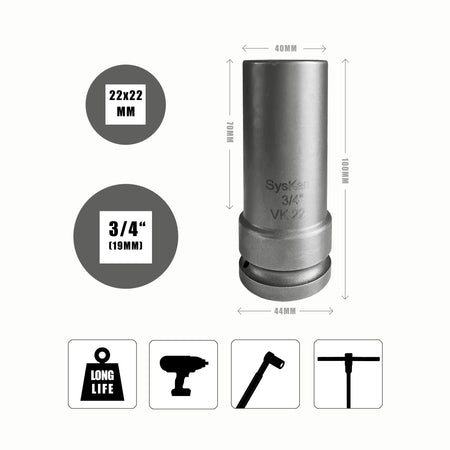 Square socket ¾" inch IVKT 22 mm x 20 mm ? Deep for impact wrench