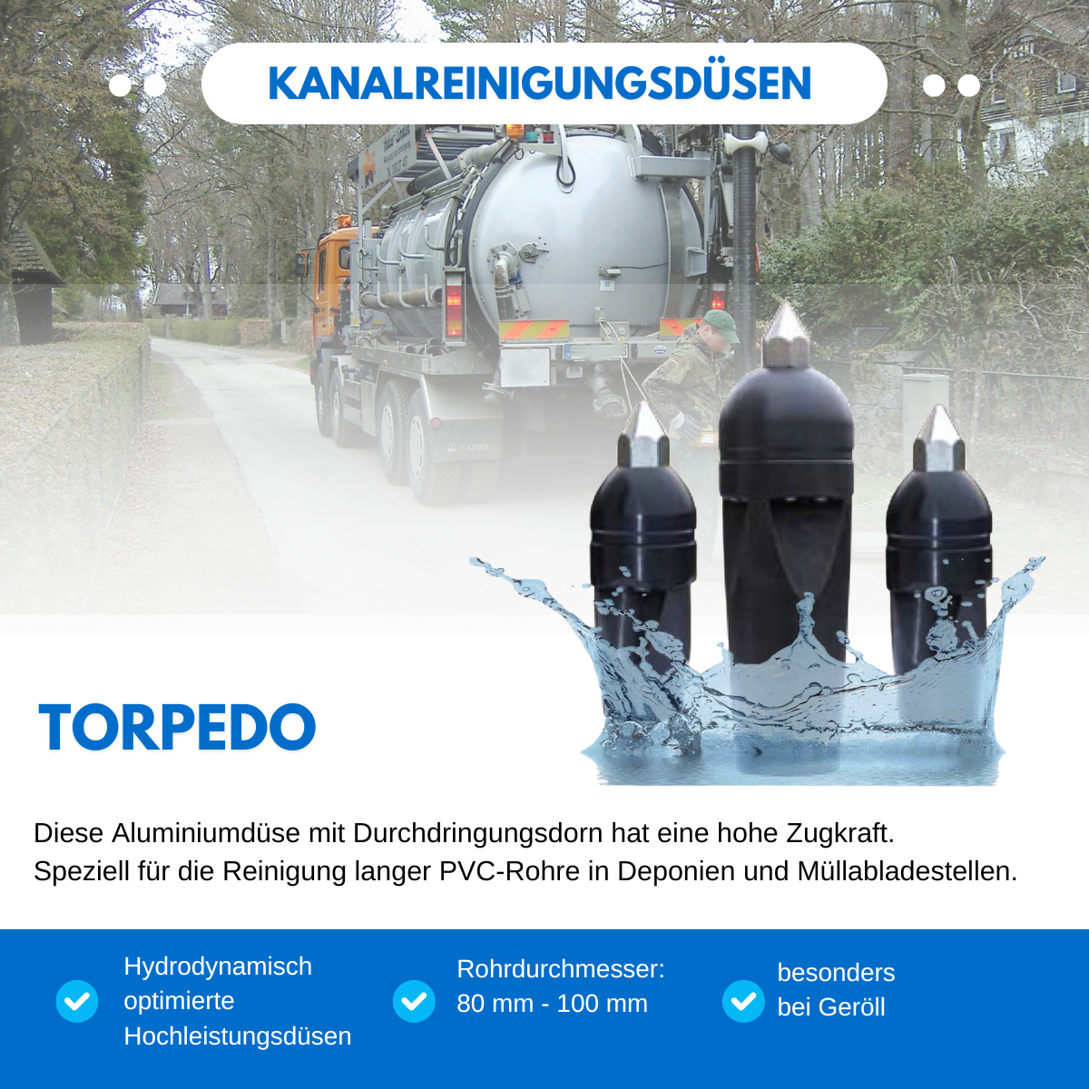 Torpedo aluminum nozzle T12 3/4", sewer cleaning nozzle