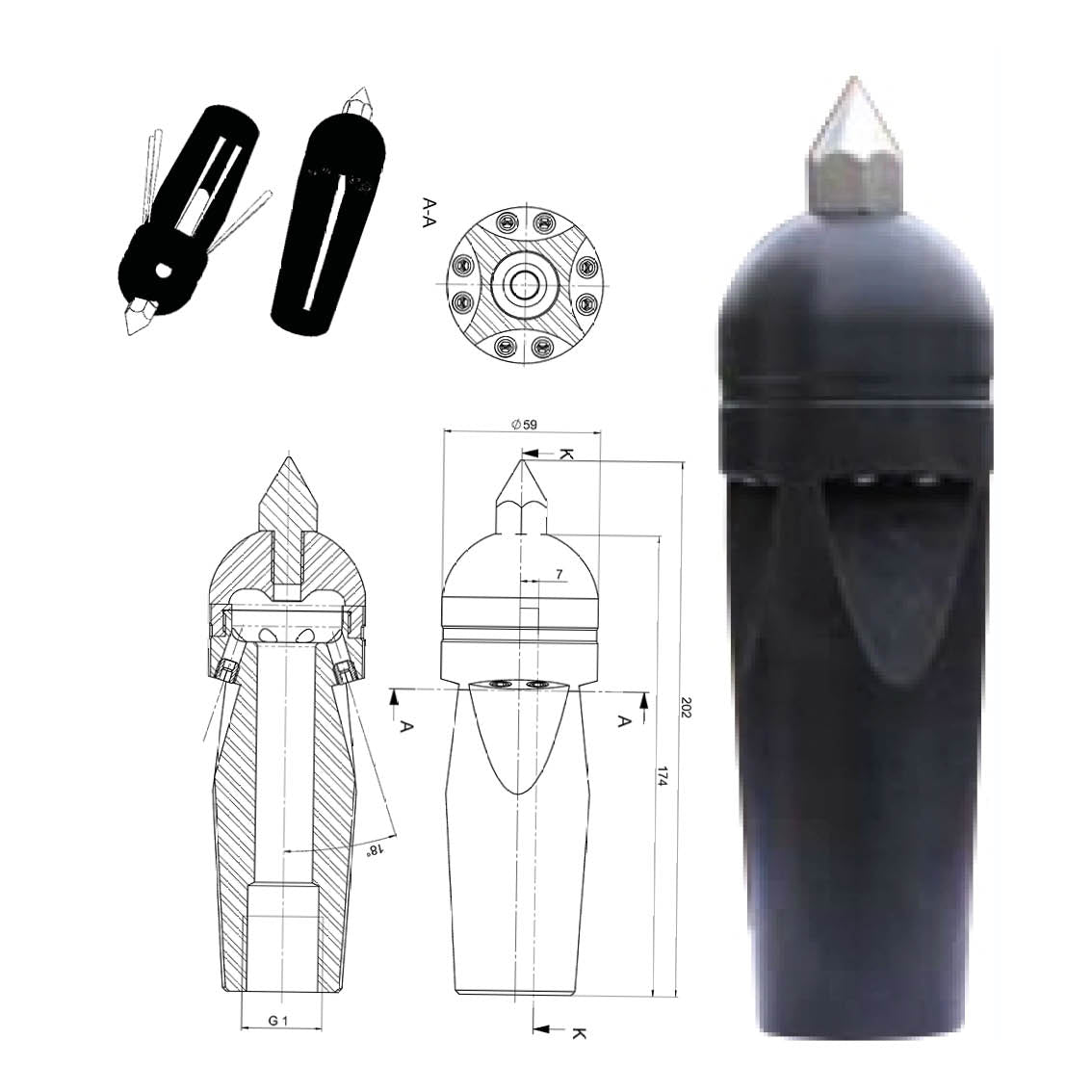 Ø x L: 60 x 175 mm