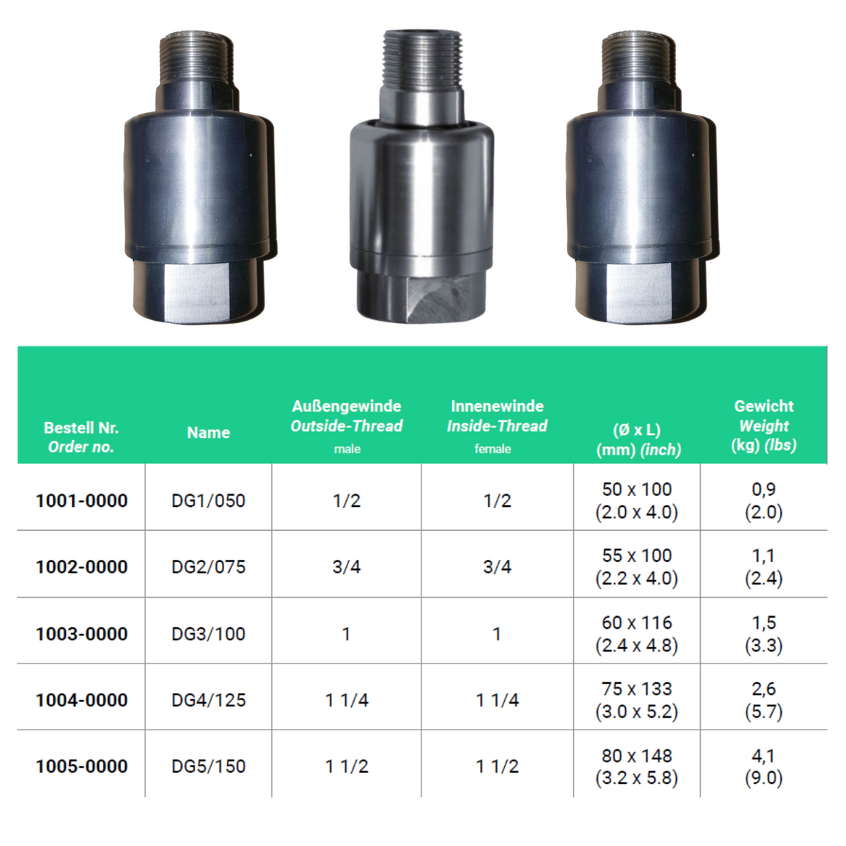 - Filetage extérieur (mâle) : 1/2"
