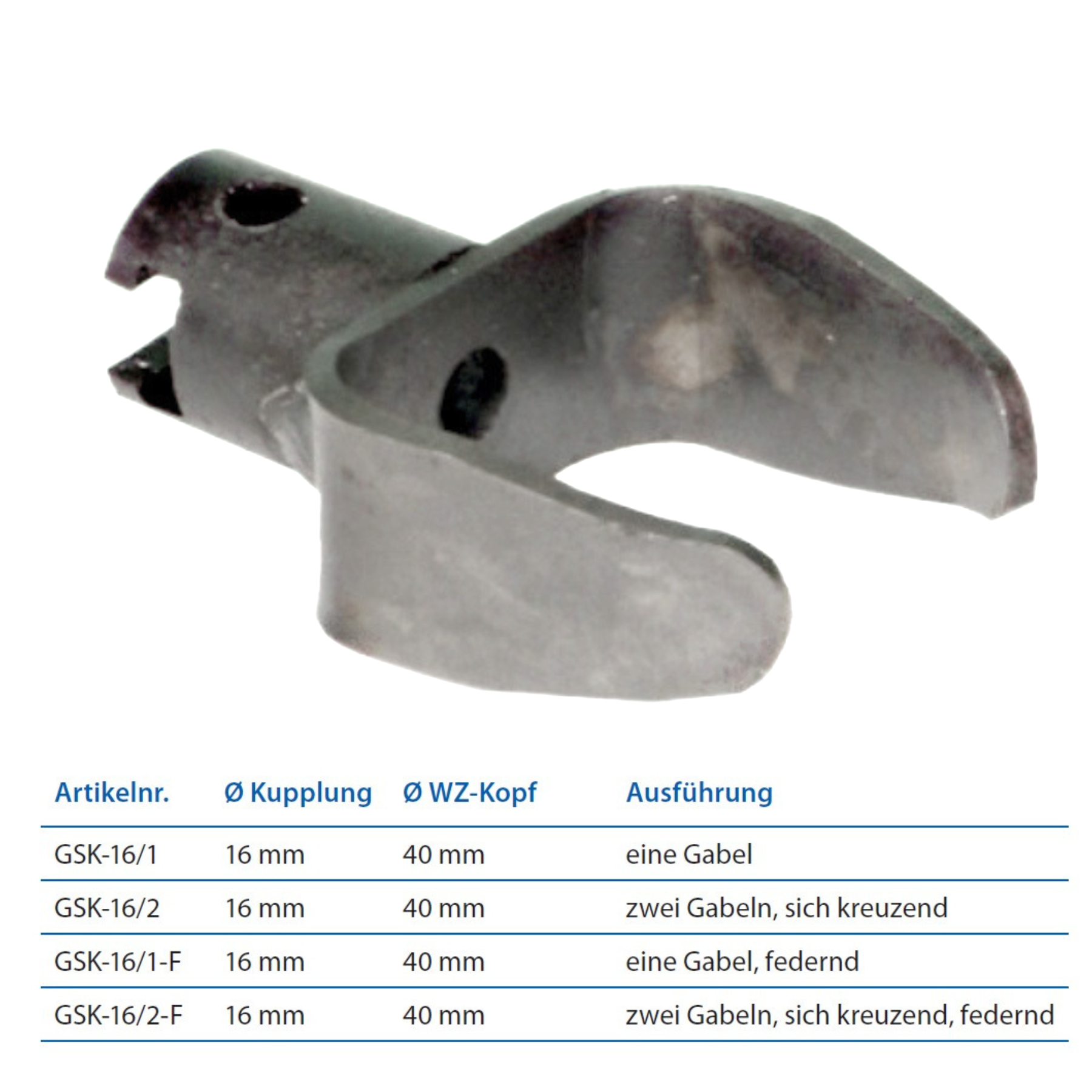 Tête de coupe à fourche avec accouplement de 16 mm, 1 fourche à ressort