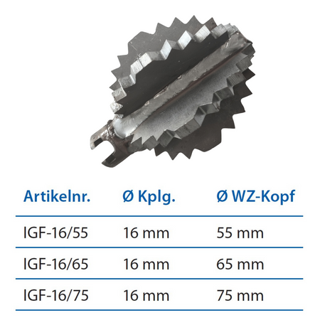 Ø Tête WZ : 55 mm à 75 mm : Domaine d'application flexible pour divers