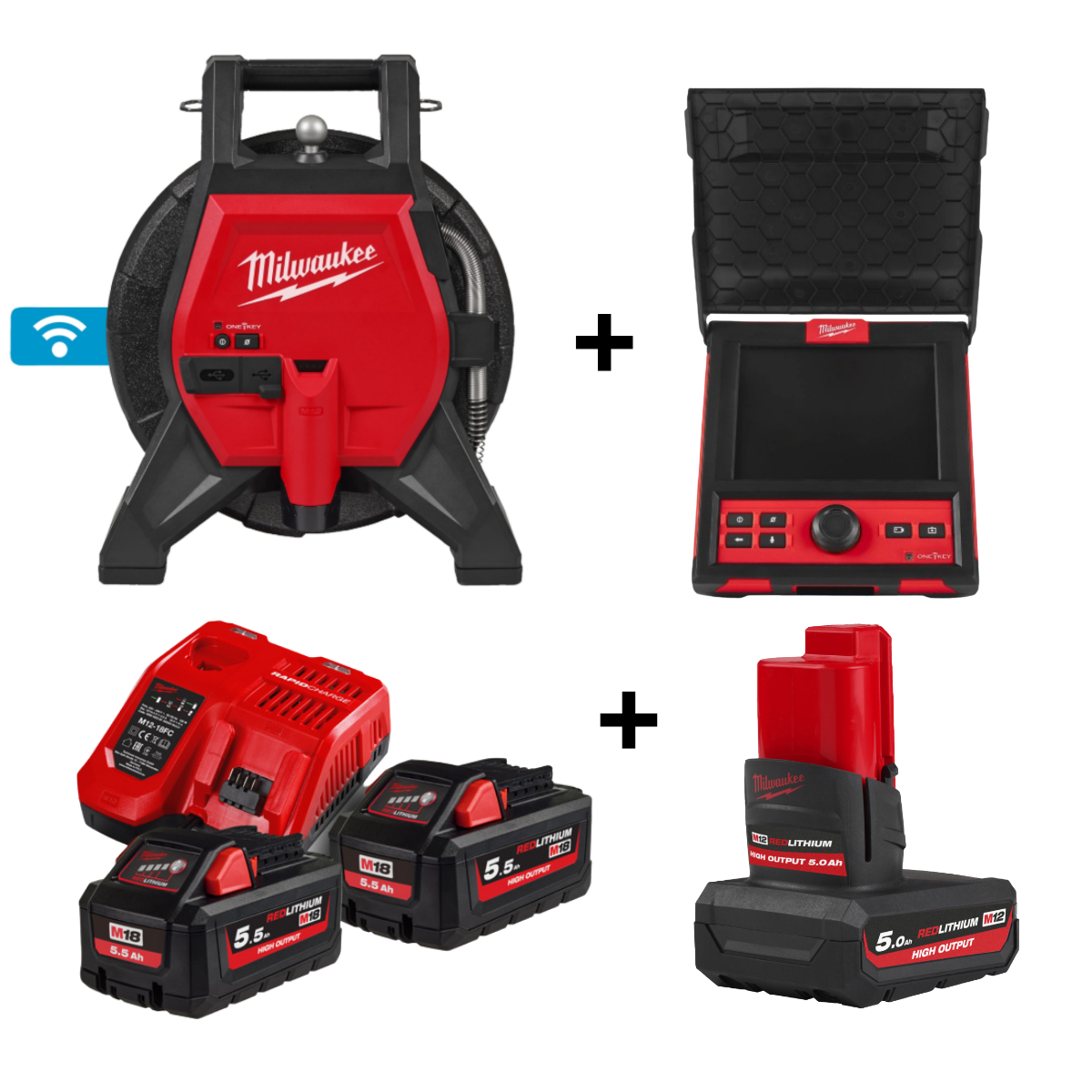 1x jeu de batteries M18 (2x 18V 5,5 Ah, 1x 12V 3,0 Ah, 1x chargeur M12-18 FC)