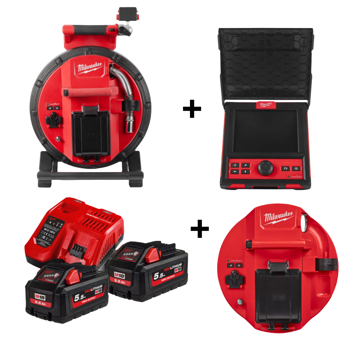 1x jeu de batteries M18 (2x 18V 5,5 Ah, 1x 12V 3,0 Ah, 1x chargeur M12-18 FC)