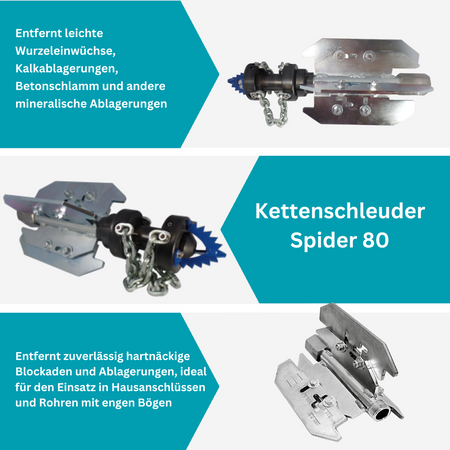 Coupe-chaîne Spider 80 ? Nettoyage efficace des canalisations de 200 à 250 mm de diamètre.