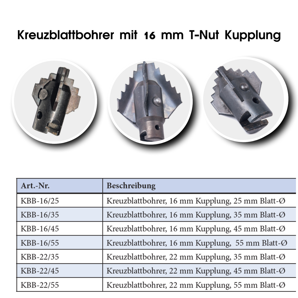 Foret à lame croisée, raccord 16 mm x Ø 25 mm, fixation en spirale