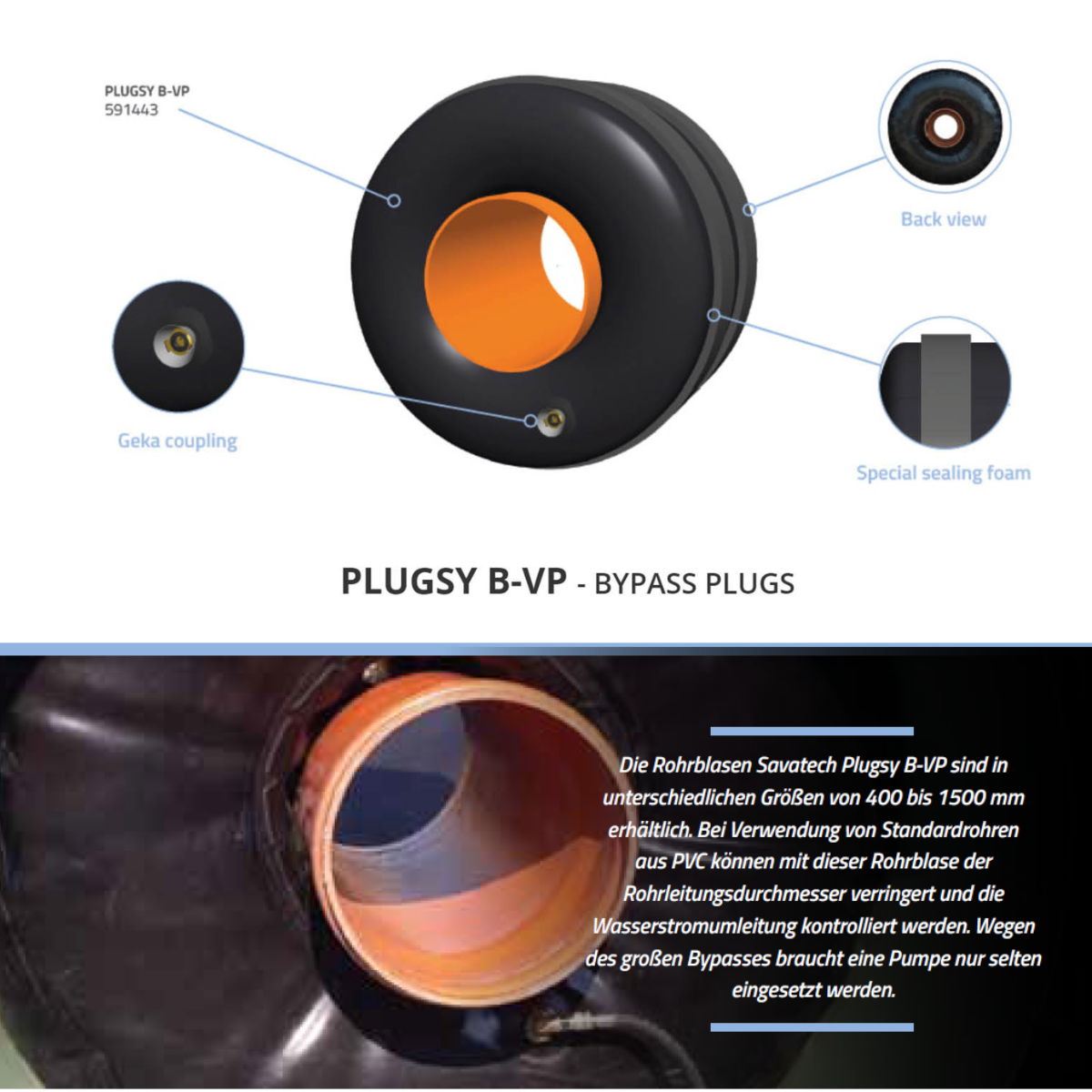 Vessie d'essai pour tuyaux B-VP Plugsy DN 400-1000 mm, ronde
