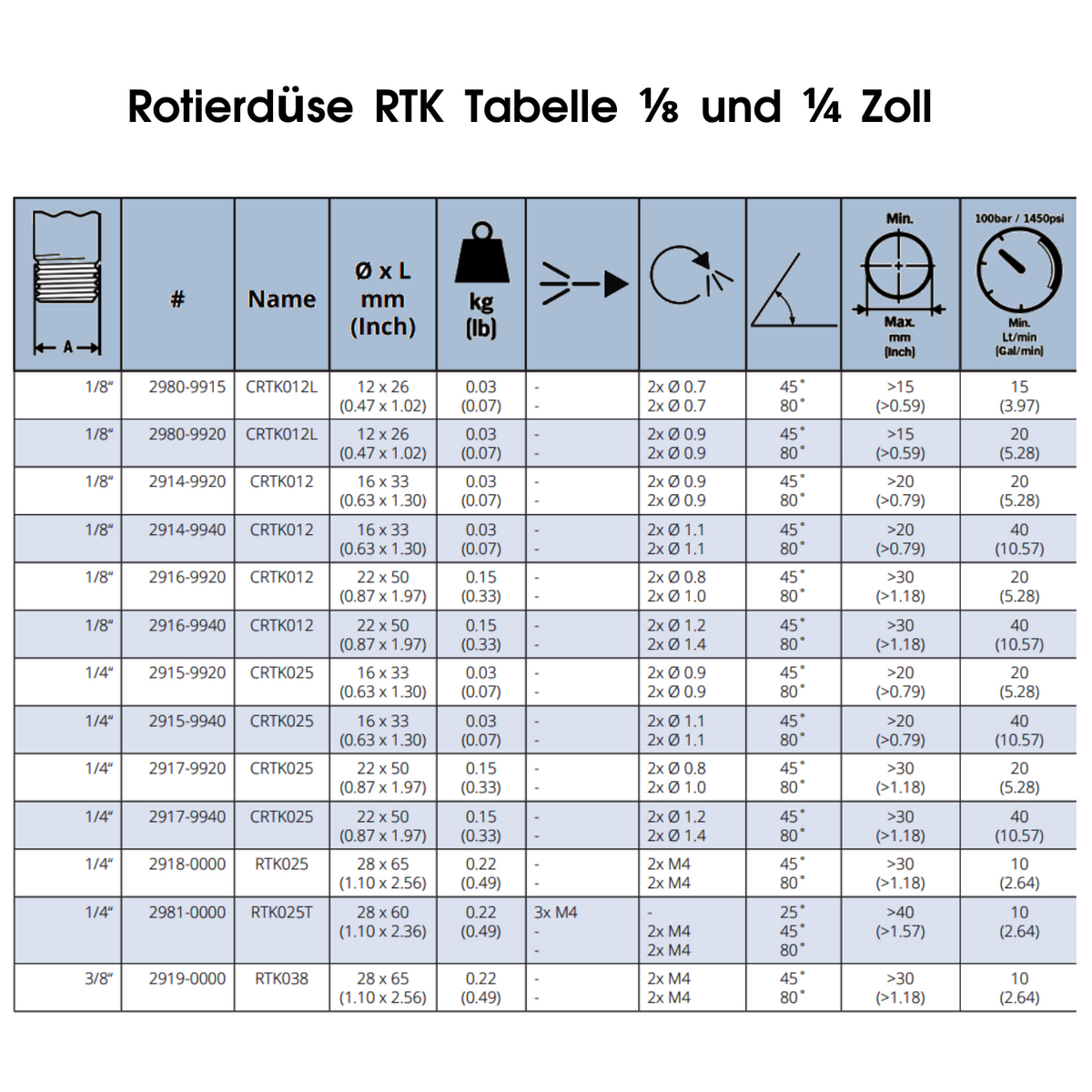 Buse rotative RTK 12 mm, 1/8", buse rotative