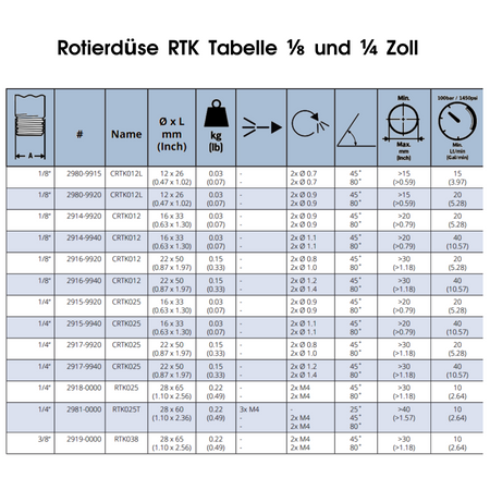 Buse rotative RTK 16 mm, 1/4", buse rotative, 40 litres