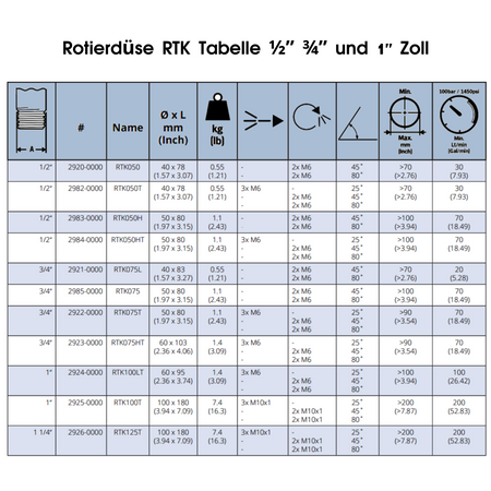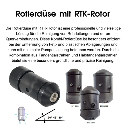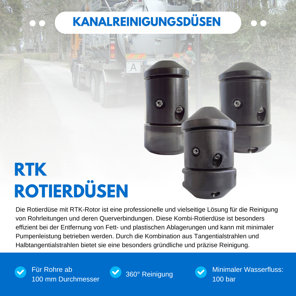 Buse rotative RTK 60 mm, buse de nettoyage d'égouts 1"