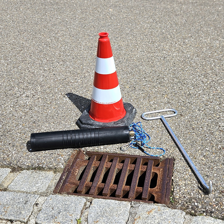 A enfoncer dans les regards, les œillets et sous les couvercles de regards.