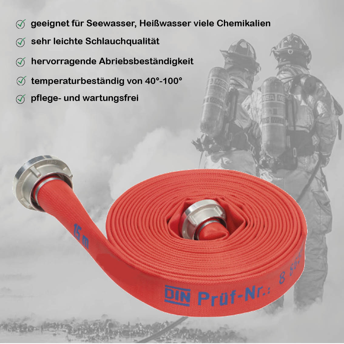 Tuyau d'incendie DIN robuste : fabriqué selon les normes DIN strictes,