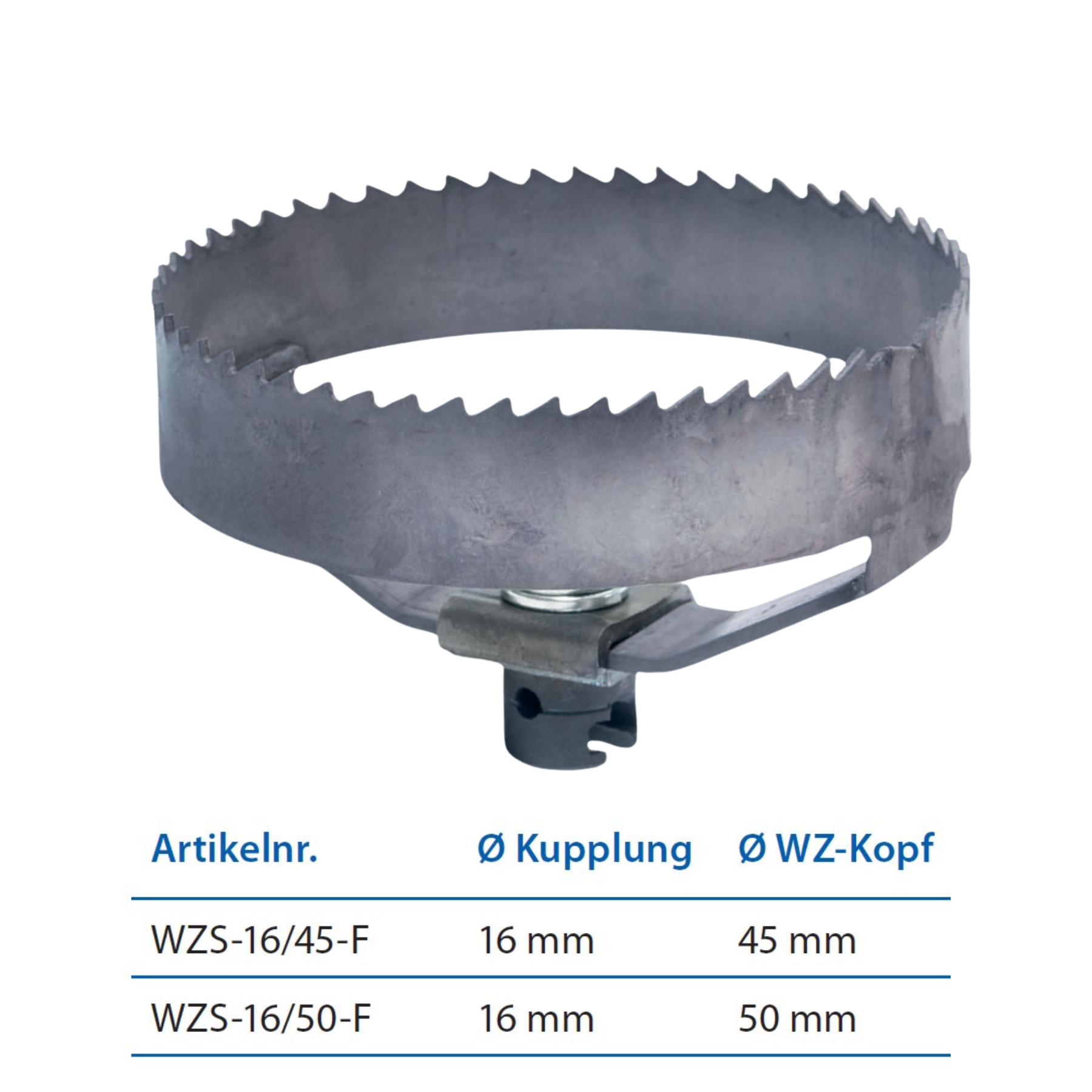 Coupe-racines 16 x 50 mm, denture fine, accessoire spirale pour nettoyage de tuyaux