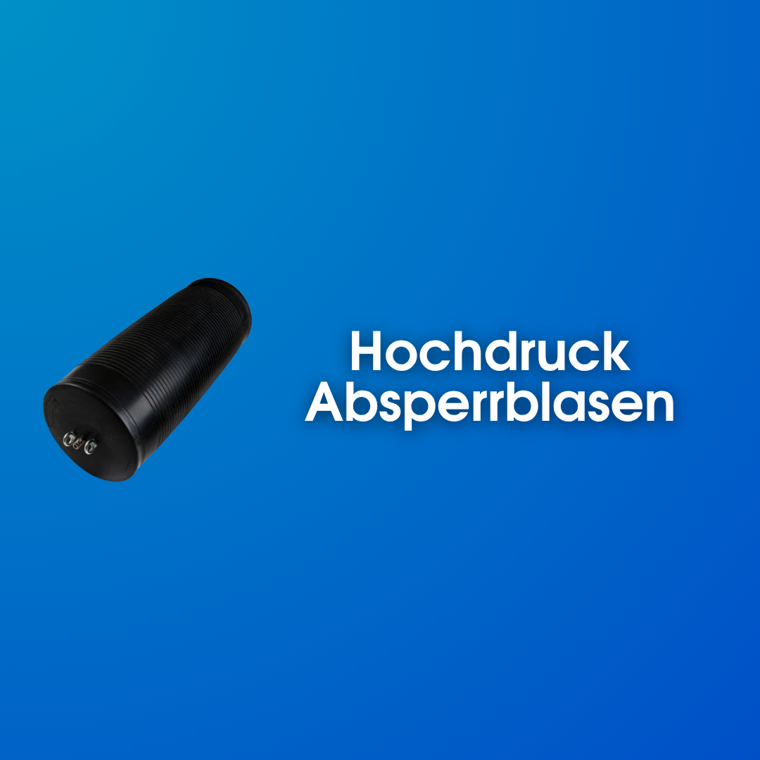 Verstärkte Absperrblasen für extreme Gegendruckwerte, verfügbar in 6 und 12 bar mit Kevlarkord und fünf Größen.
