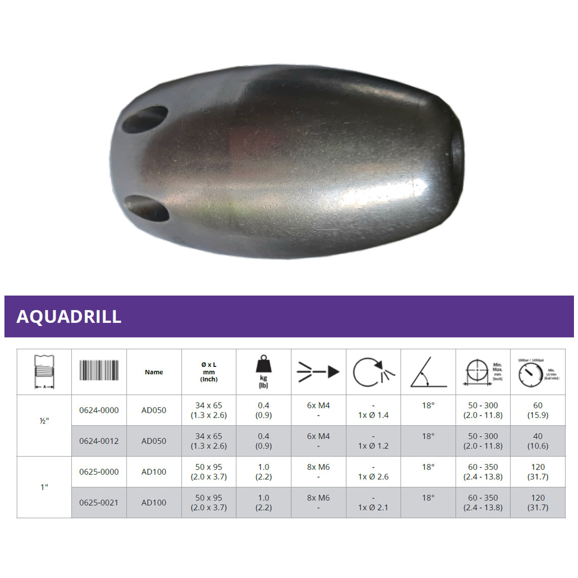 Aquadrill (Twister-Düse) AD12 1/2", Vorstrahl Ø 1,4 mm, Kanalreinigungsdüse