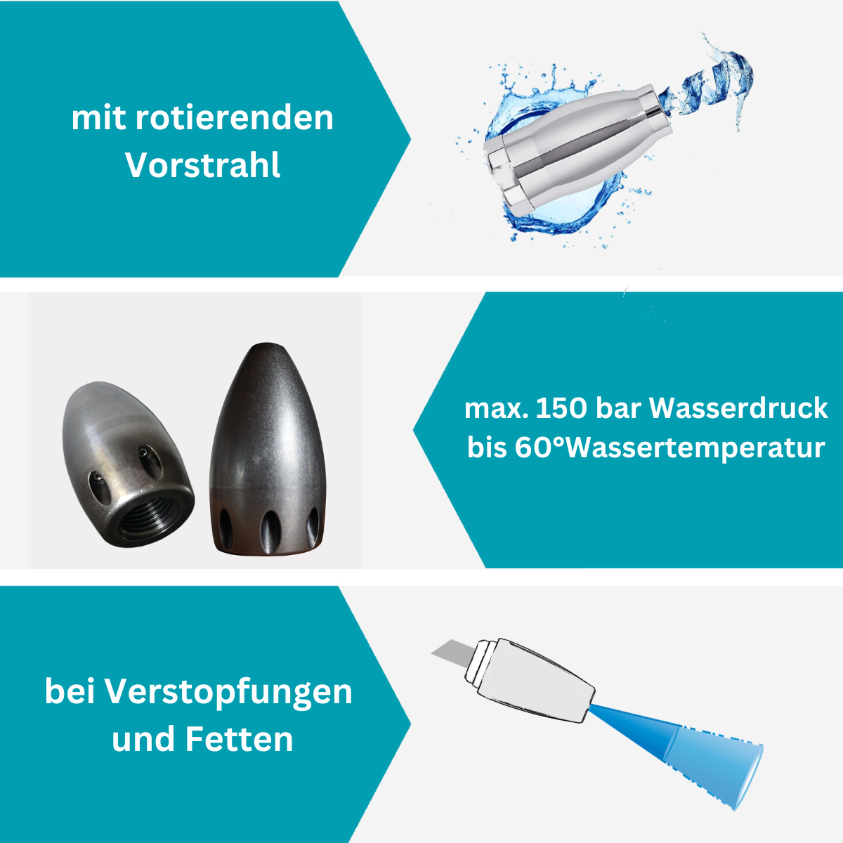 Aquadrill (Twister-Düse) 1", Vorstrahl Ø 2,6 mm, Kanalreinigungsdüse