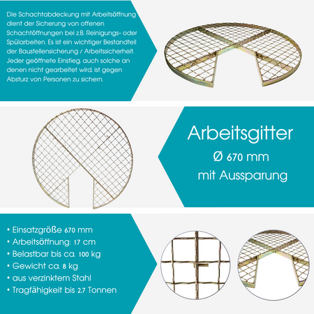 Arbeitsgitter SG021 Ø 670 mm Schachtabdeckung mit Aussparung (ohne Fahnen)