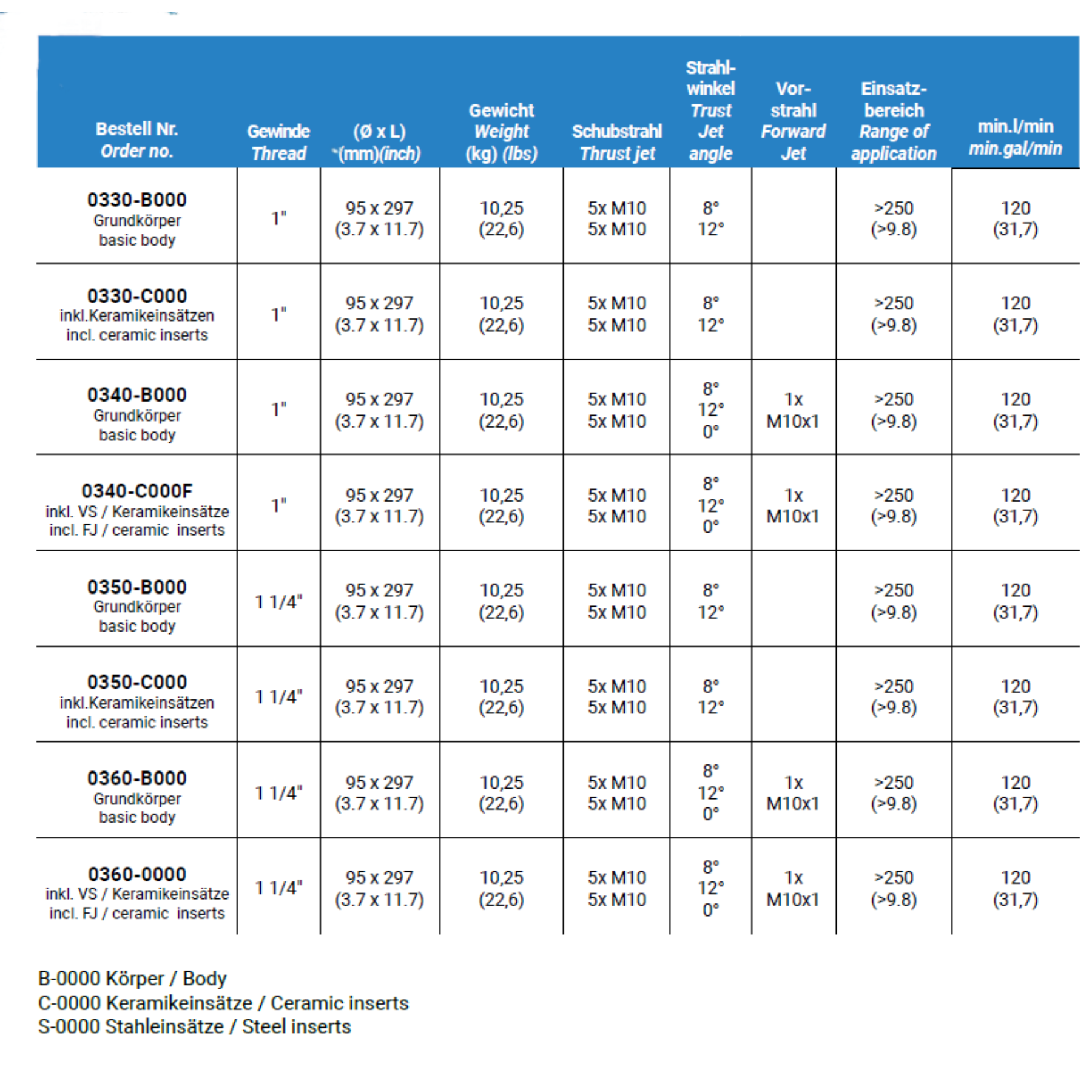 - inkl. 10x M10x1 Keramikdüseneinsätze