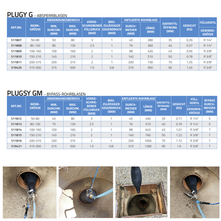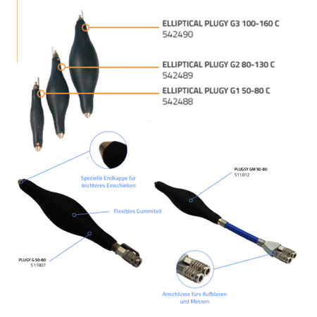 Elliptische Rohrblase Plugsy GM5 - DN 200-315, Durchgangsblase