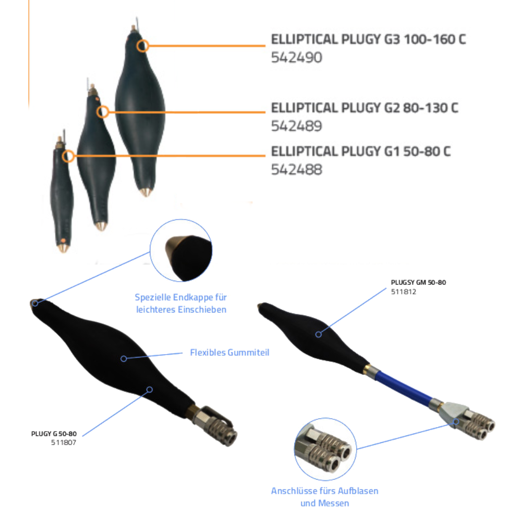 Die multidimensionalen Rohrblasen PLUGY G und PLUGSY GM eignen sich zur