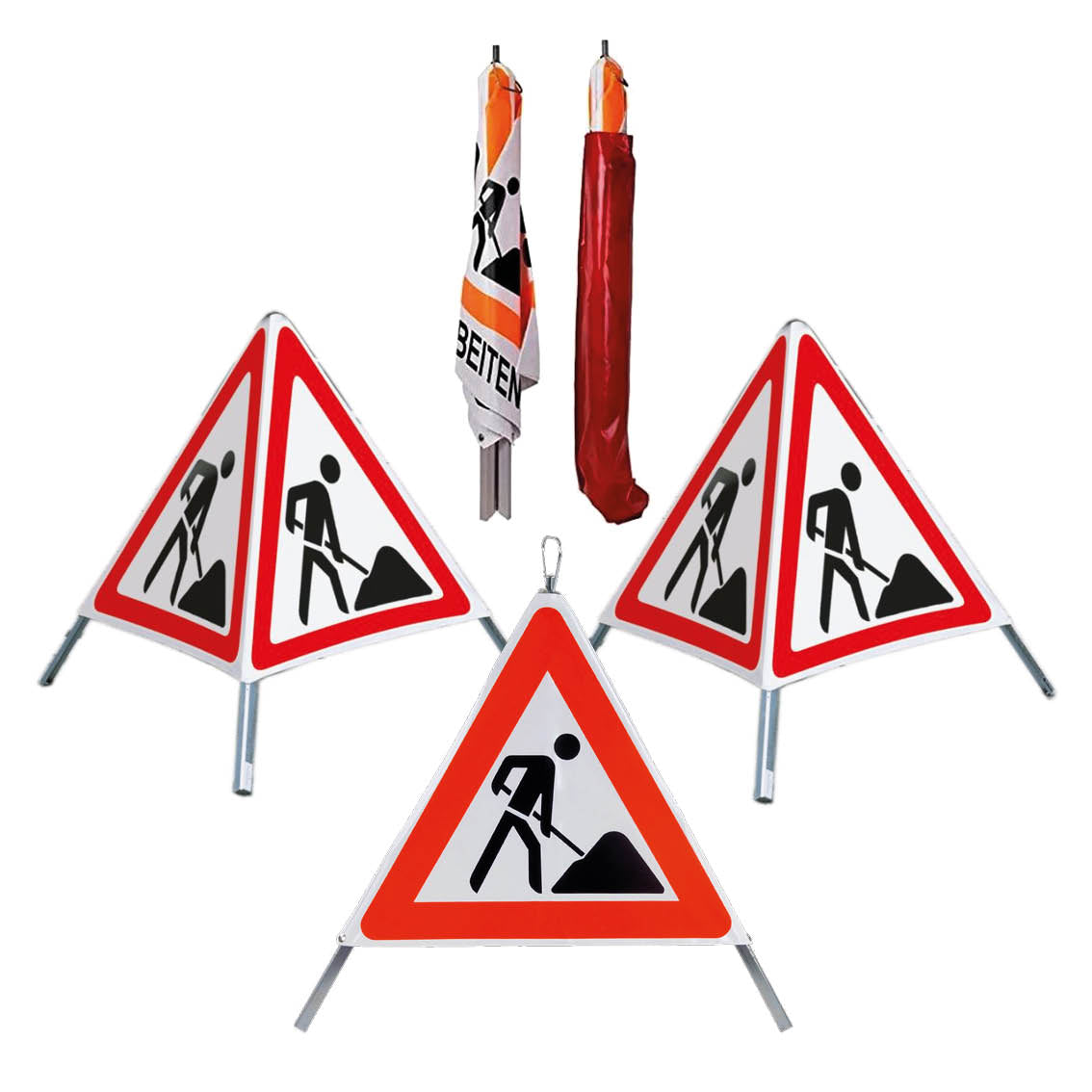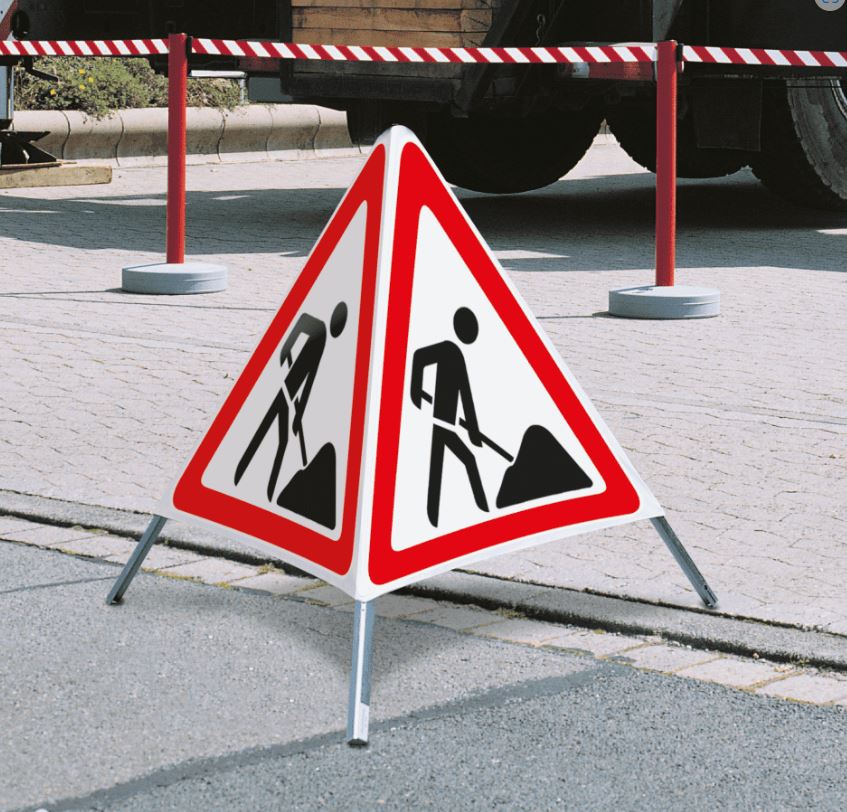 Faltsignal ist mit einem großen Bauarbeiter-Symbol bedruckt, um deutlich auf