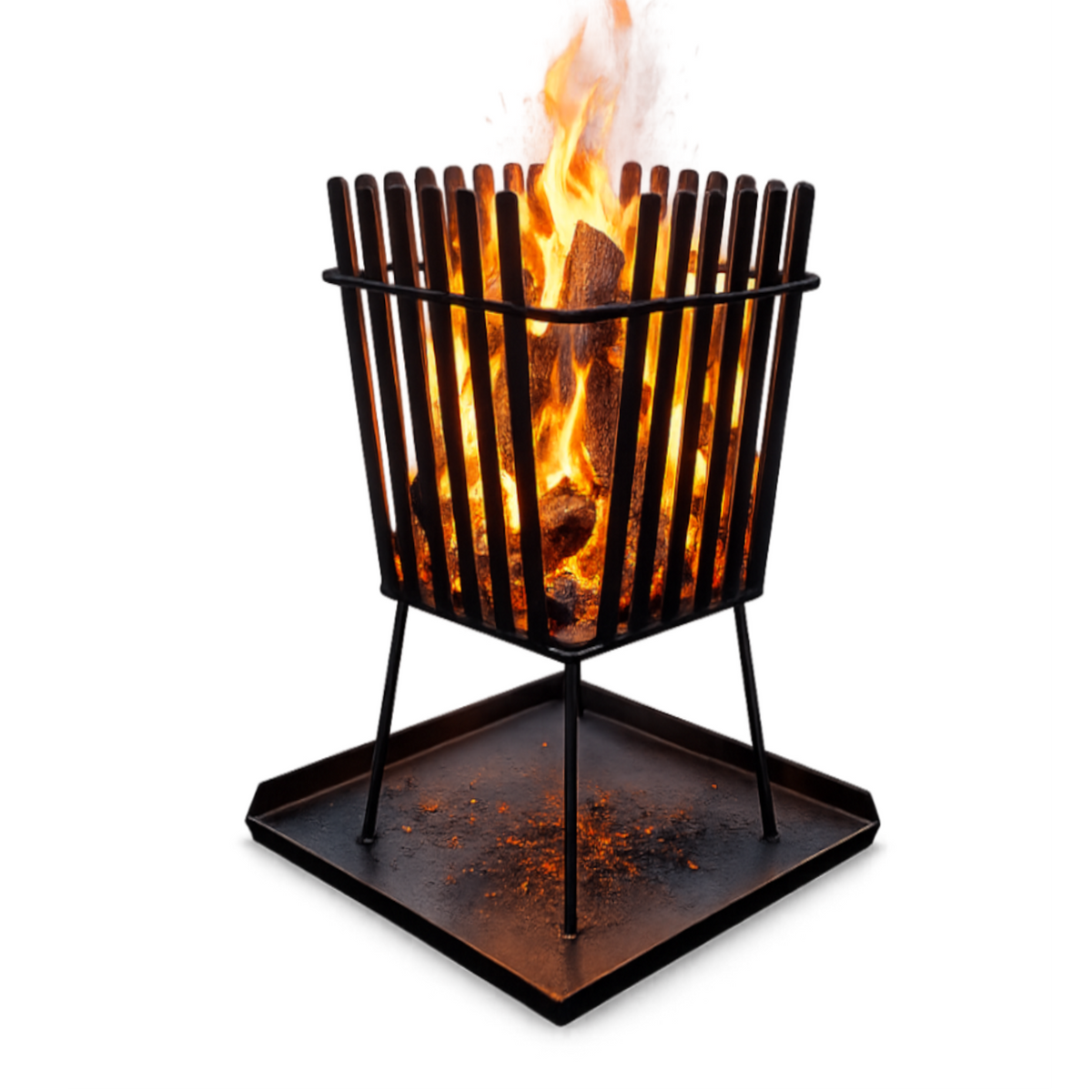Feuerkorb eckig aus feuerfestem Stahl mit Bodenblech – Feuerstelle für Garten