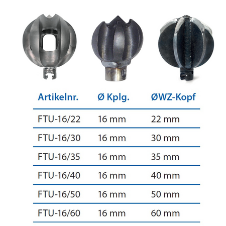 Frästulpe ist ebenfalls in verschiedenen Varianten erhältlich: mit einer 22 mm