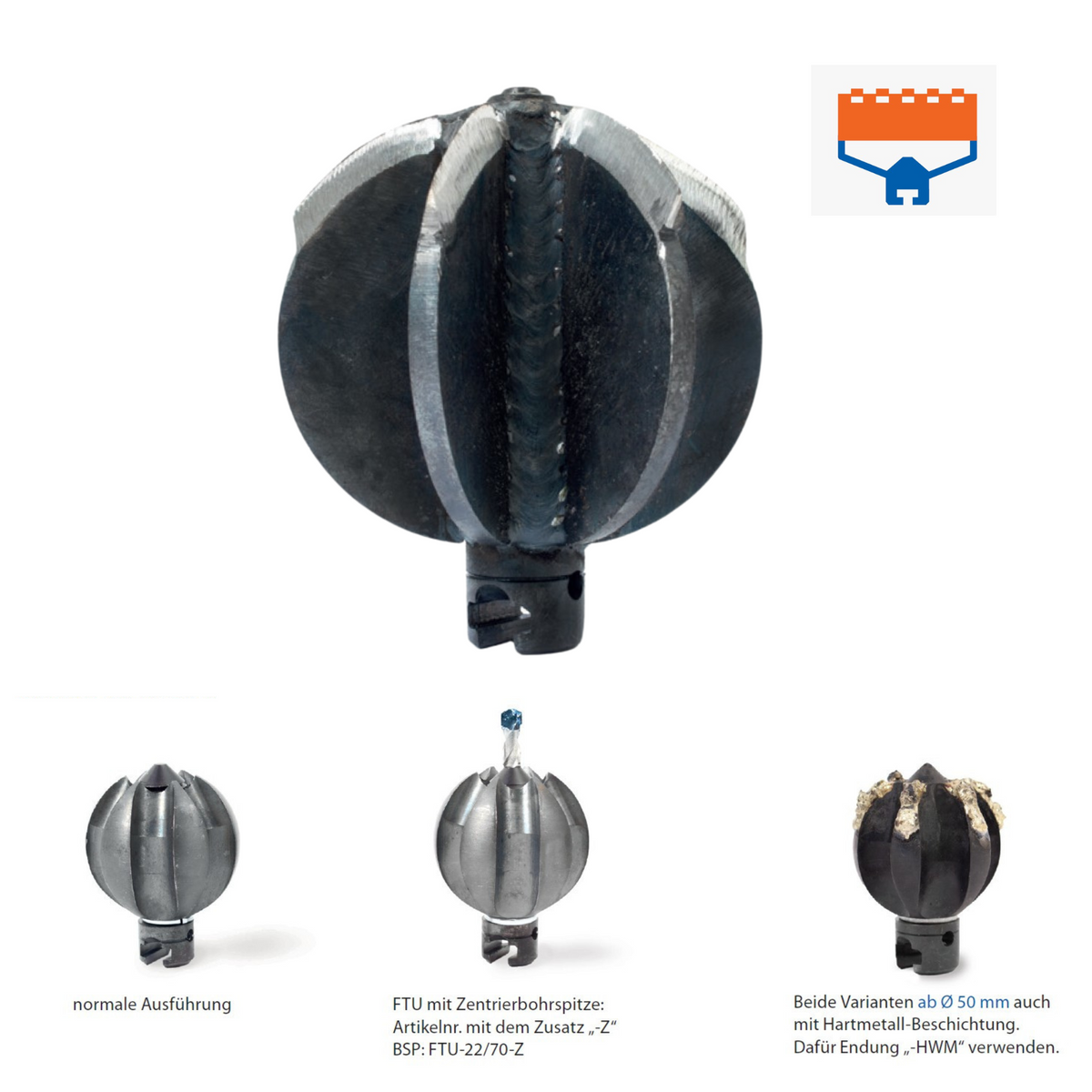 Frästulpe ist ebenfalls in verschiedenen Varianten erhältlich: mit einer 22 mm