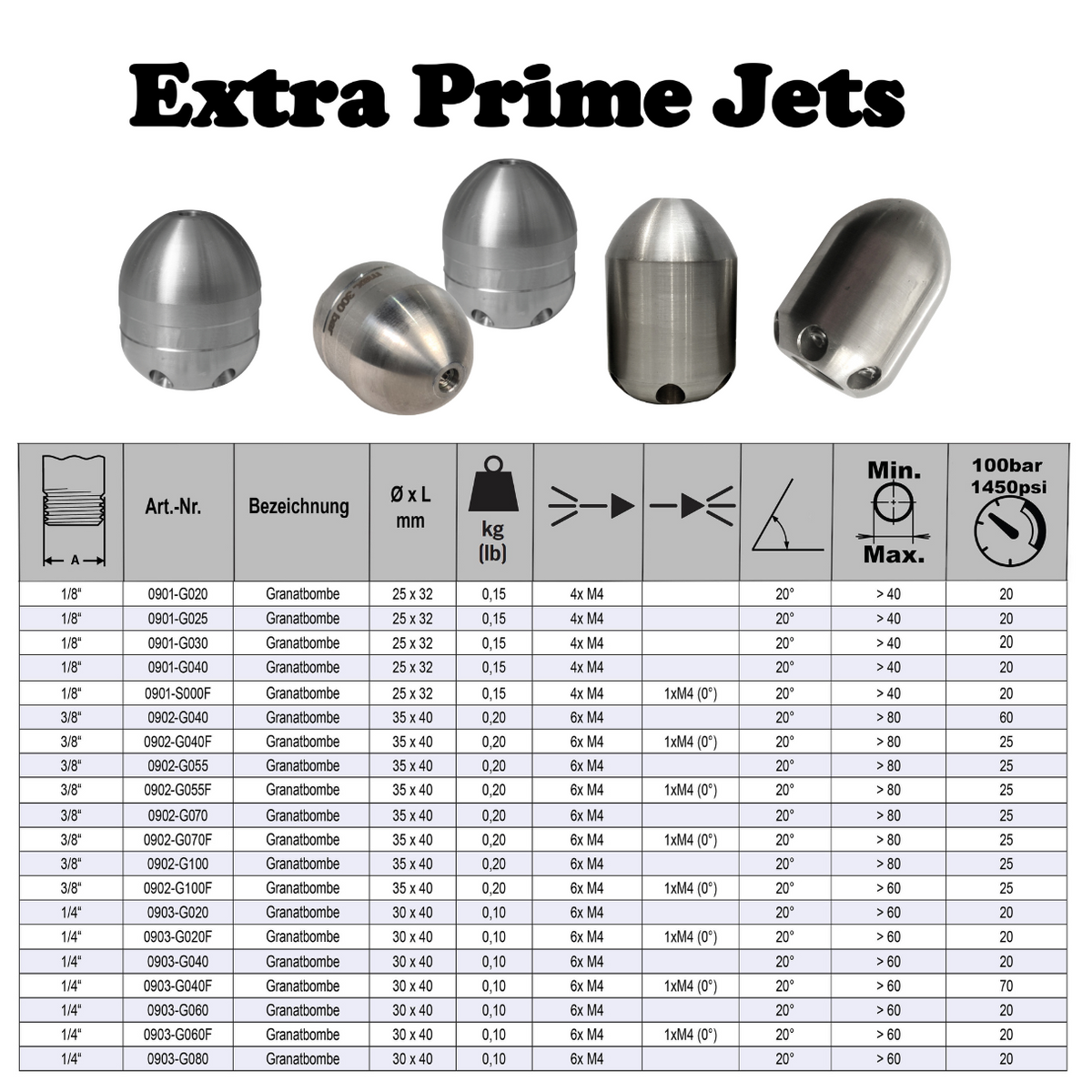 Granatbombe 3/8" mit Vorstrahl und Stahleinsätzen, ExPJ Reinigungsdüse