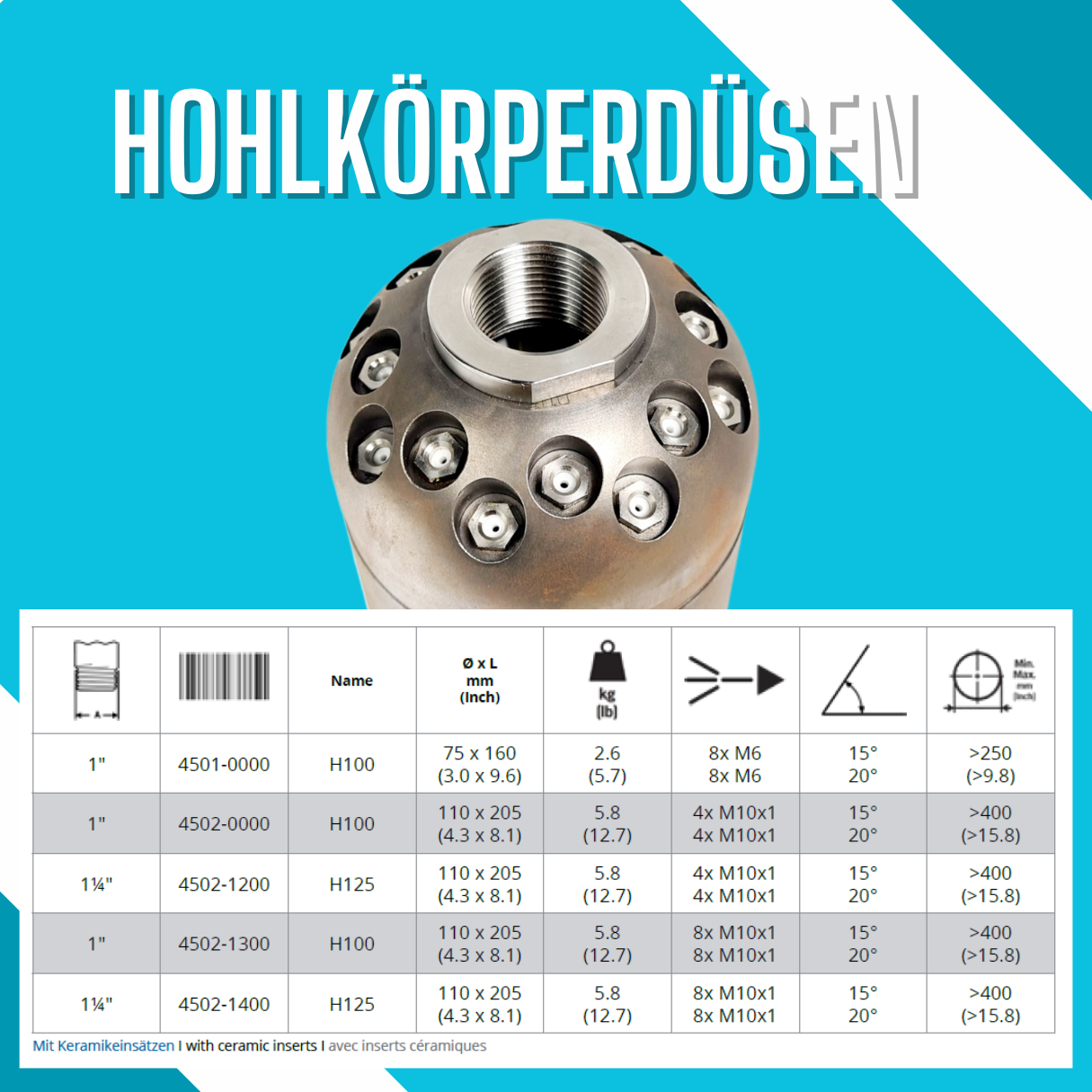 Hohlkörperdüse H112, 110 mm 1 1/4" Kanalreinigungsdüse