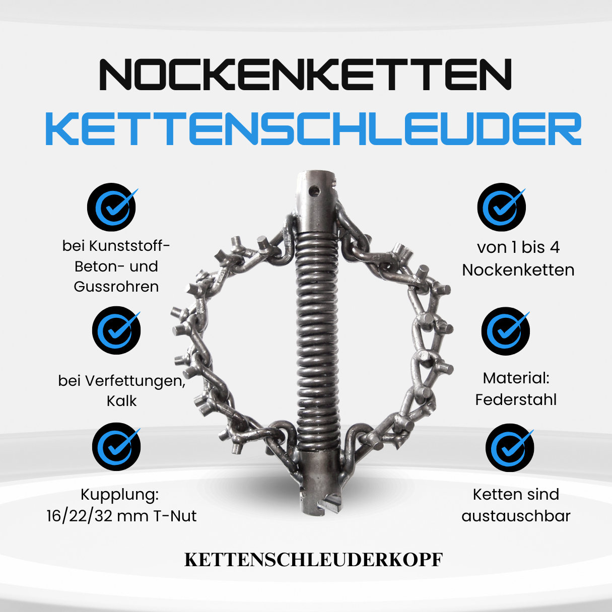 Kettenschleuder 32 mm T-Nut Kupplung, mit 1 Nockenkette, Spiralaufsatz