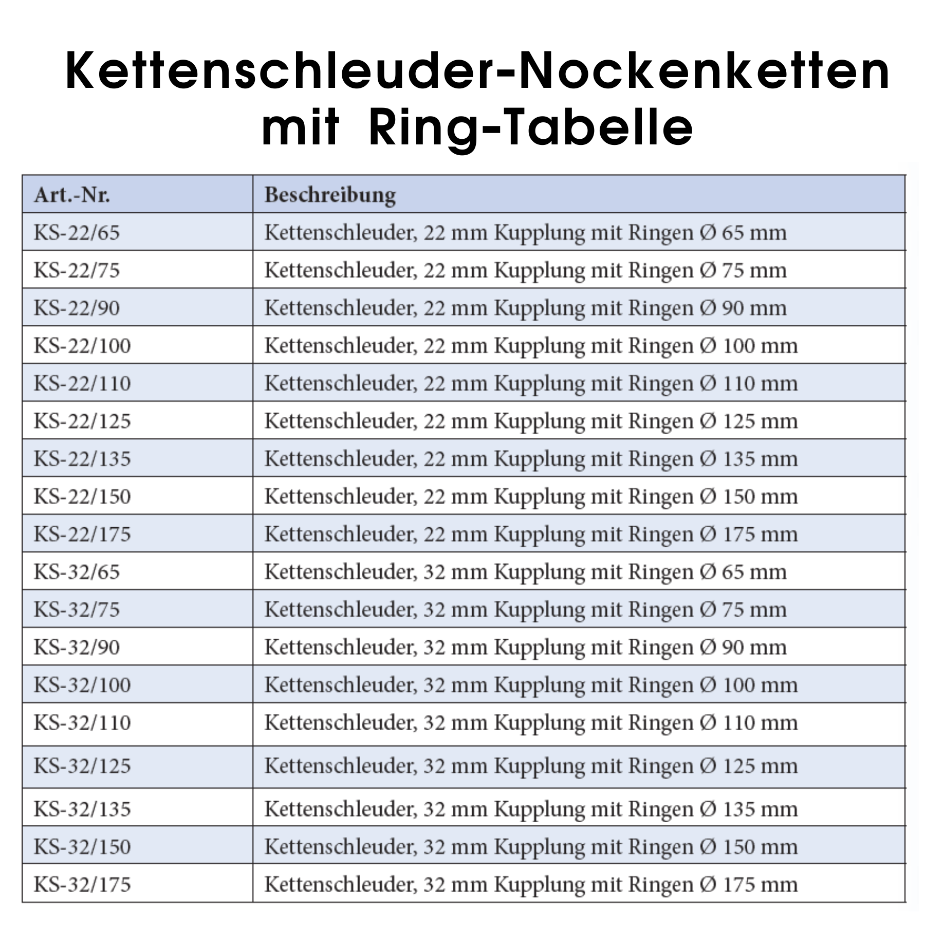 Kettenschleuder 32 mm, mit Ring, DN 110, 4 Nockenketten, Spiralaufsatz