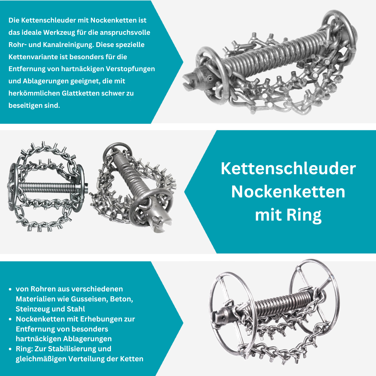 Kettenschleuderkopf mit Nockenketten und Ring – Maximale Reinigungsleistung