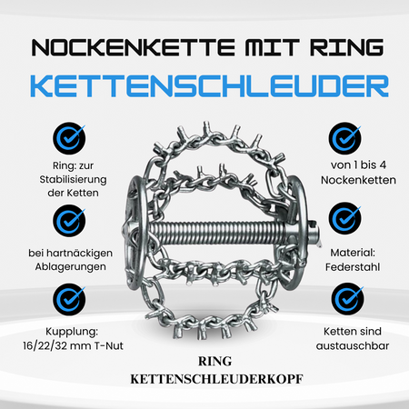 Der Kettenschleuderkopf mit Nockenketten und Ring ist ein leistungsstarkes