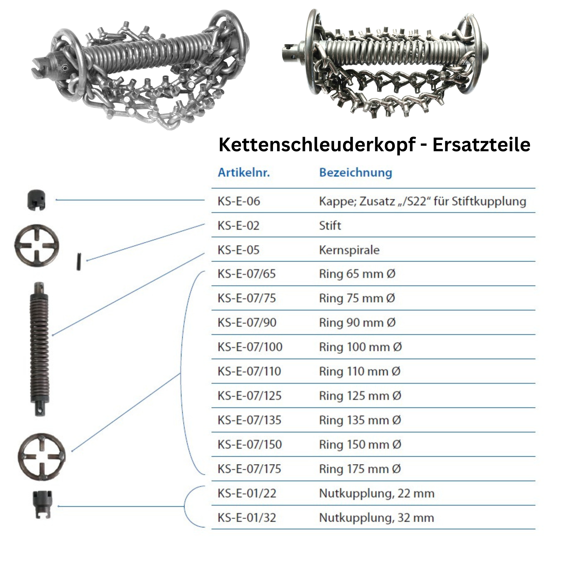 Kettenschleuderkopf mit Nockenketten und Ring – Maximale Reinigungsleistung