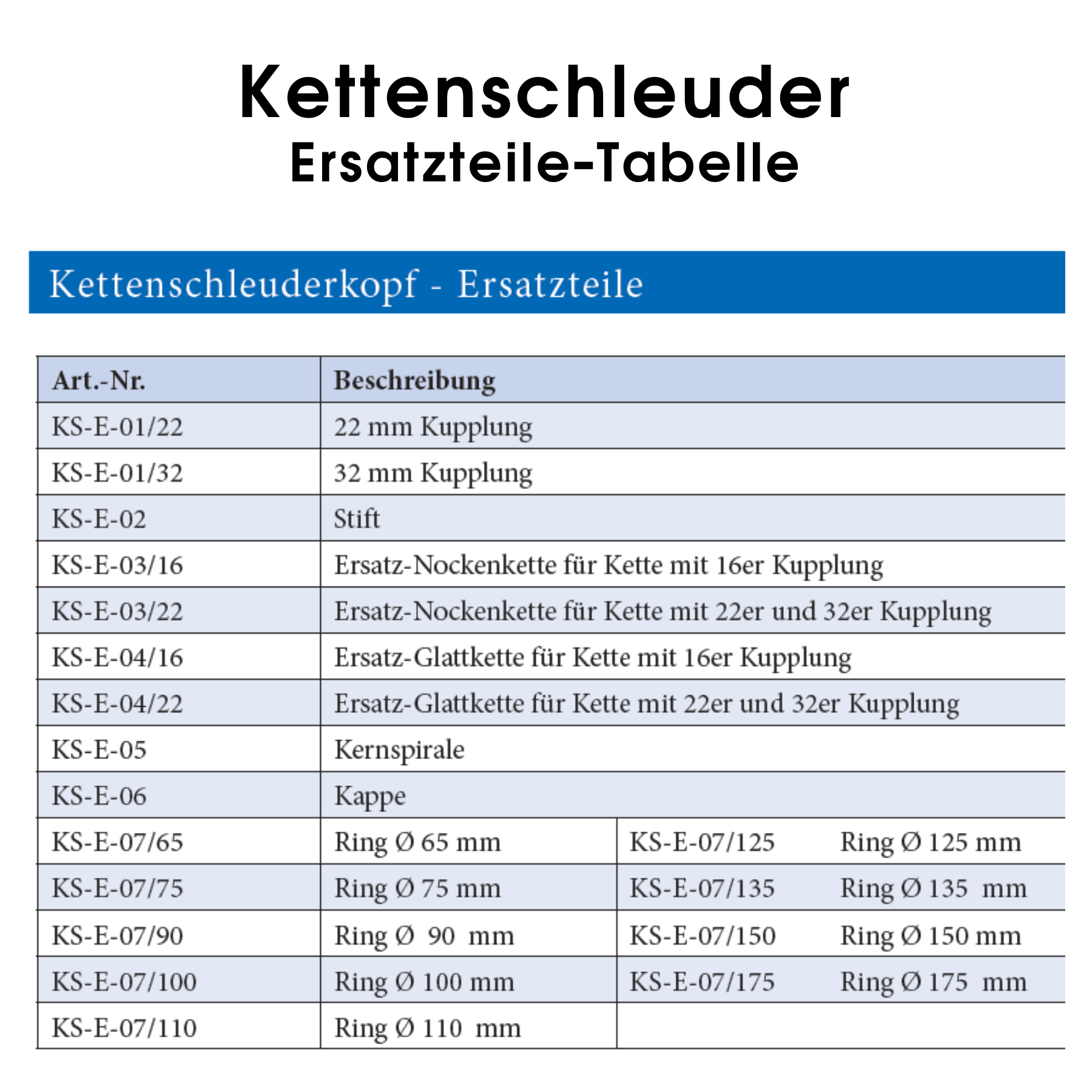 Kettenschleuder 32 mm, mit Ring, DN 75, 4 Nockenketten, Spiralaufsatz