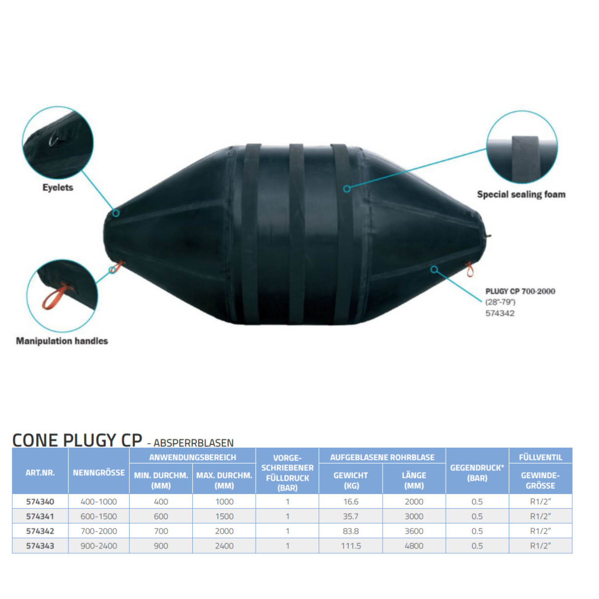 Rohr-Absperrblase konisch CP -DN 900-2400 mm, kegelförmig