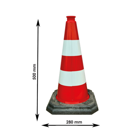 Leitkegel, voll-retroreflektierend, rot/weiß, 500 mm, schwer / Typ A