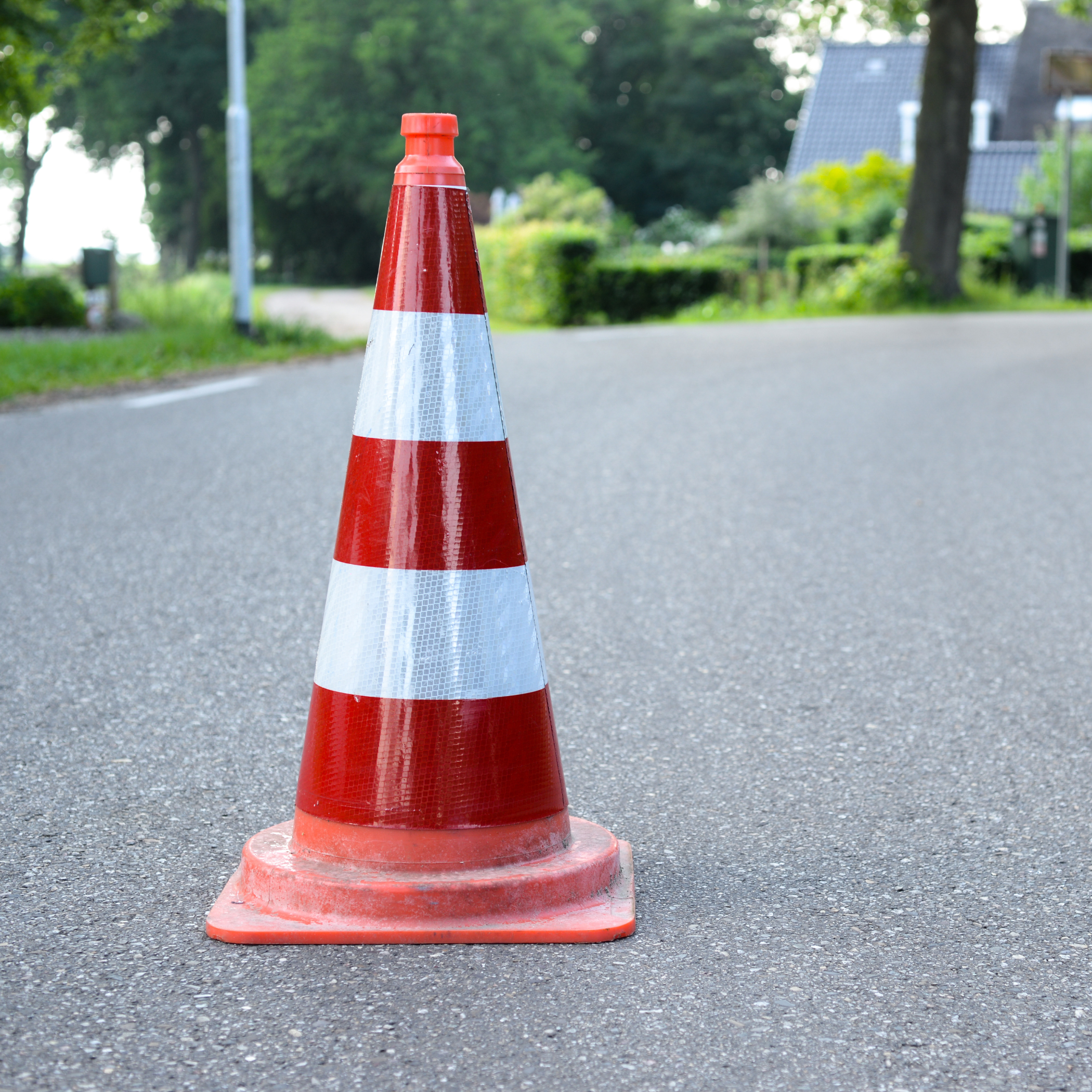 Gefahrenstellen. Der Warnkegel warnt mit seiner rot/weißen Farbgebung