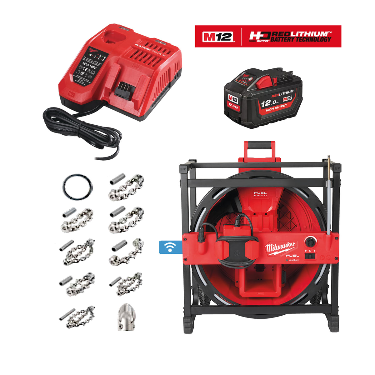 Milwaukee Akku-Hochgeschwindigkeits-Rohrreiniger mit flexibler Welle für