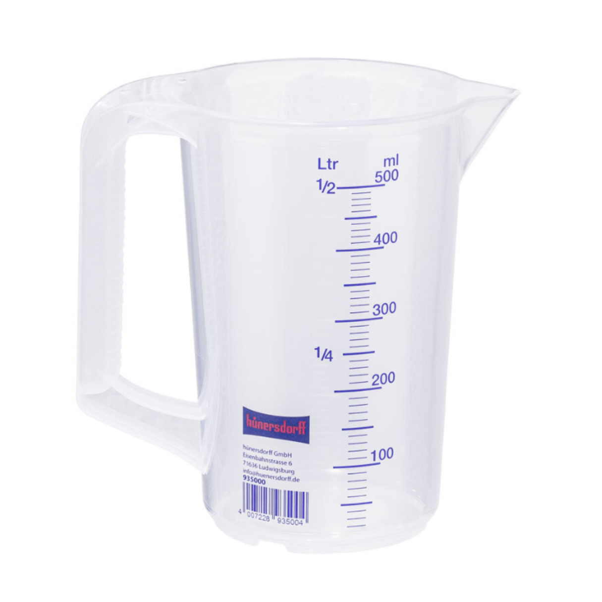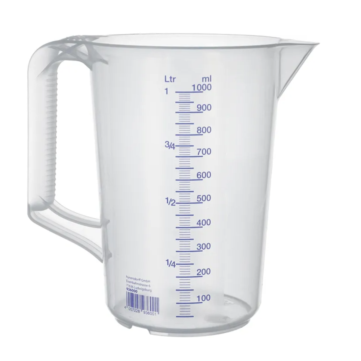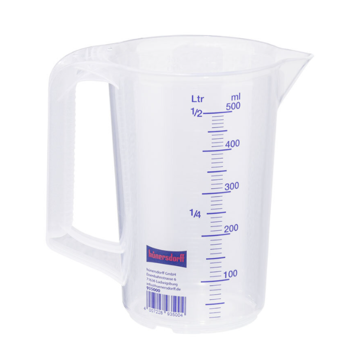 Die Messkanne (Messbecher) aus Polypropylen ist lebensmittelecht und verfügt