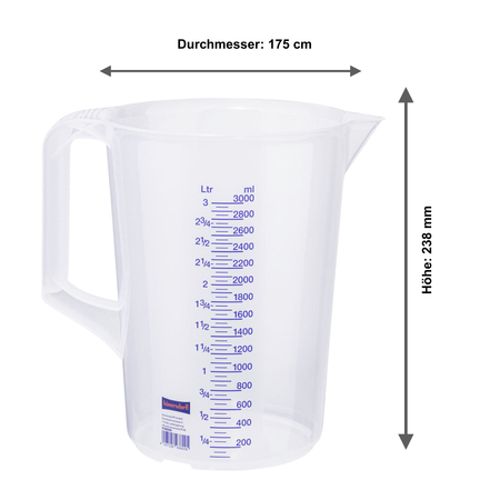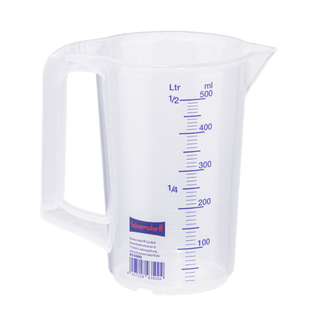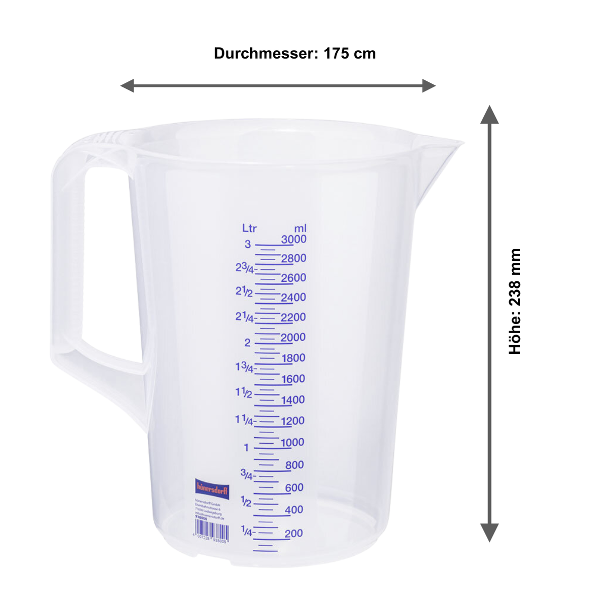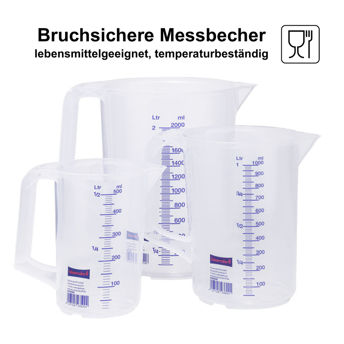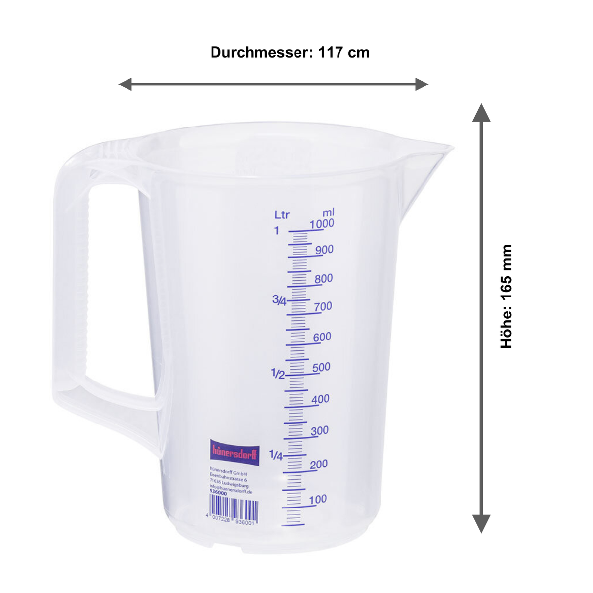 Die Messkanne (Messbecher) aus Polypropylen ist lebensmittelecht und verfügt